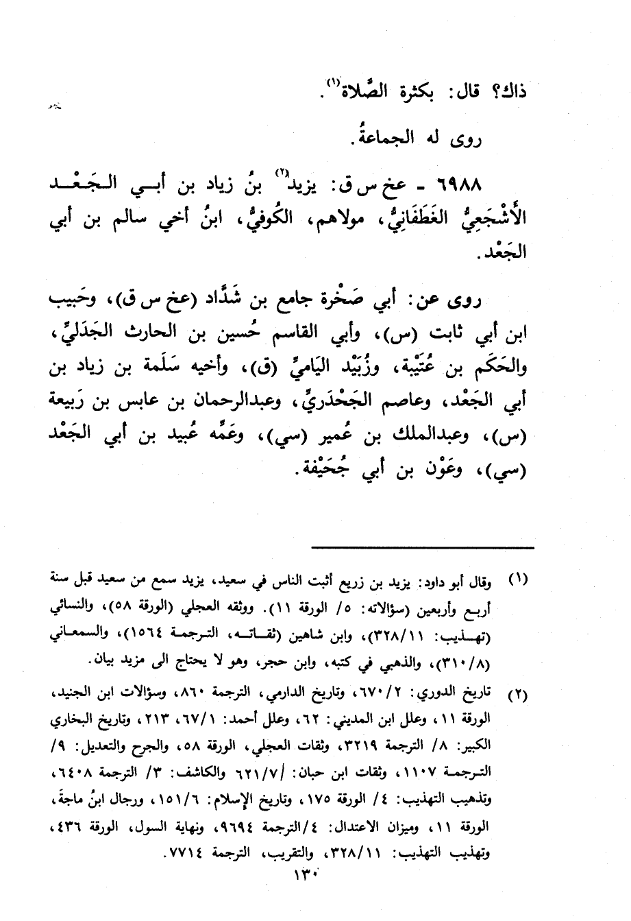 6988 - عخ س ق: يَزِيد بْن زِيَاد بْن أَبي الجعد الأشجعي الغطفاني (2) ، مولاهم، الكوفي، ابْن أخي سالم بْن أَبي الجعد.
