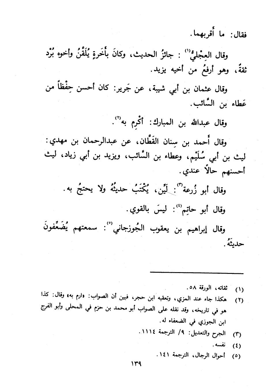 وَقَال إِبْرَاهِيم بْن يعقوب الجوزجاني (5) : سمعتهم يضعفون حديثه