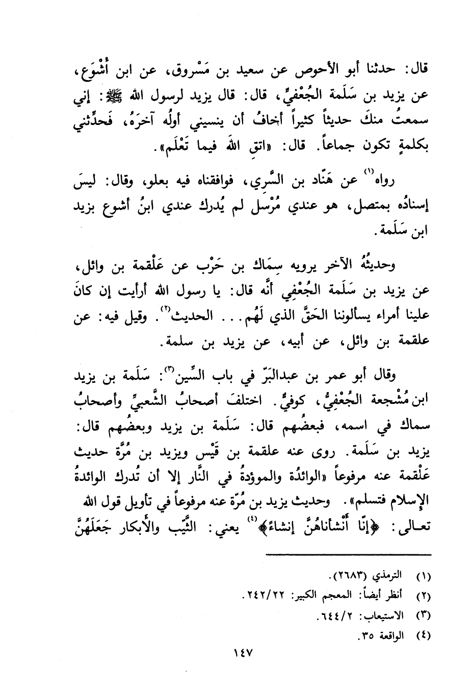 وَقَال أَبُو عُمَر بْن عَبد الْبَرِّ فِي باب السين (3) : سلمة بْن يزيد ابن مشجعة الجعفي، كوفي.