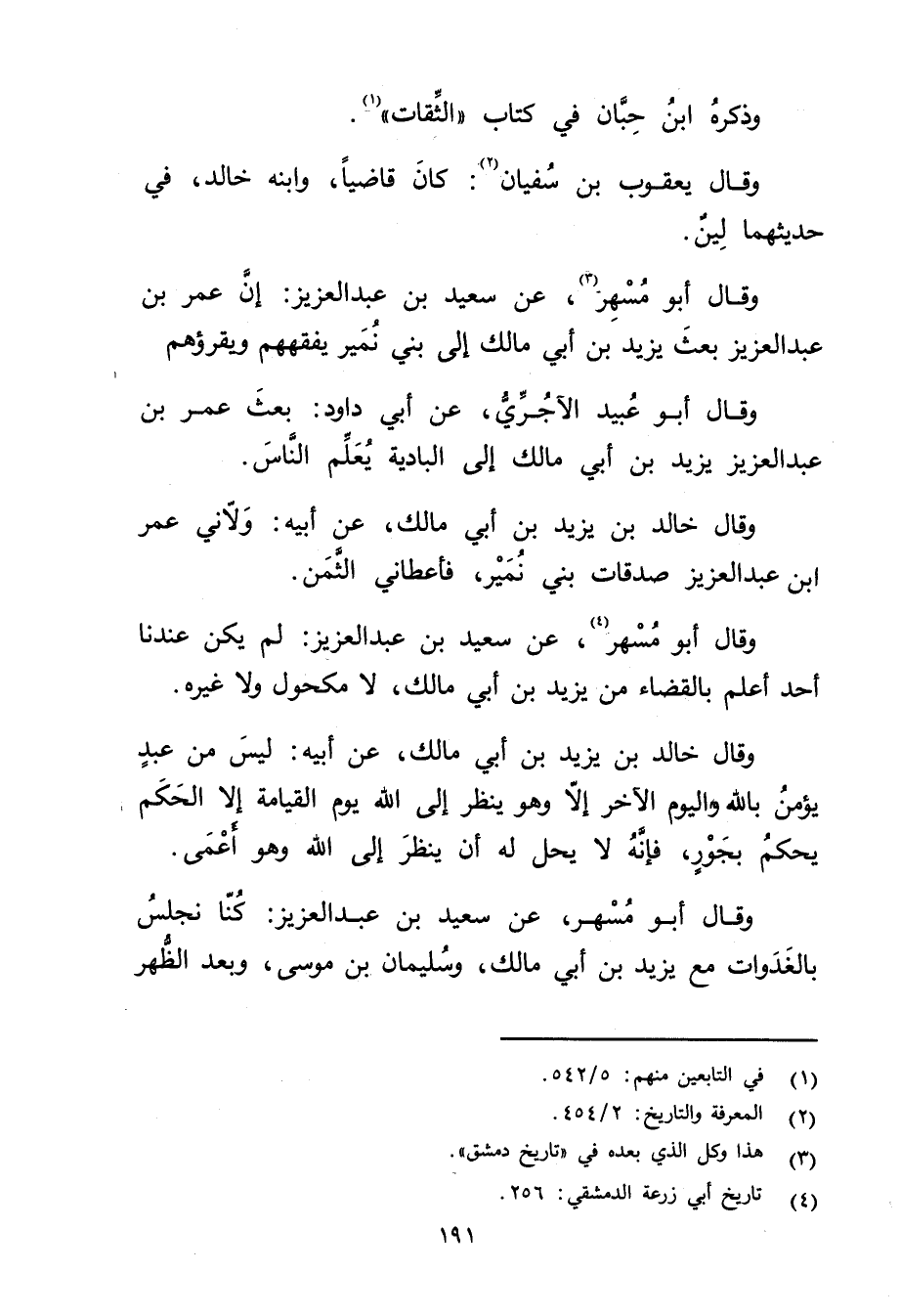 وَقَال أَبُو مسهر (3) ، عن سَعِيد بْن عبد العزيز: أن عُمَر بْن عبد العزيز بعث يزيد بْن أَبي مالك إلى بني نمير يفقههم ويقرؤهم.