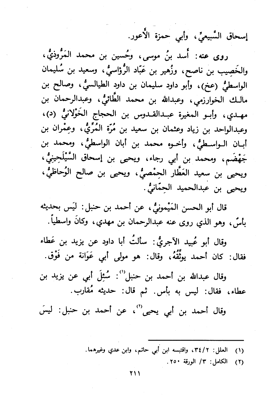 (1) العلل: 2 / 34، واقتبسه ابْنُ أَبي حَاتِمٍ، وابْنُ عَدِيٍّ وغيرهما.