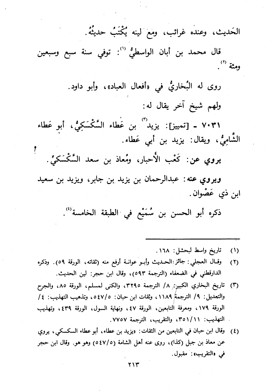 7031 - (تمييز) : يزيد (3) بن عطاء السكسكي، أَبُو عطاء الشامي، ويُقال: يزيد بْن أَبي عطاء.