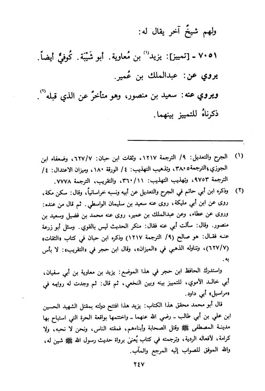 7051 - (تمييز) : يزيد بن معاوية (1) . أَبُو شَيْبَة. كوفي أيضا.