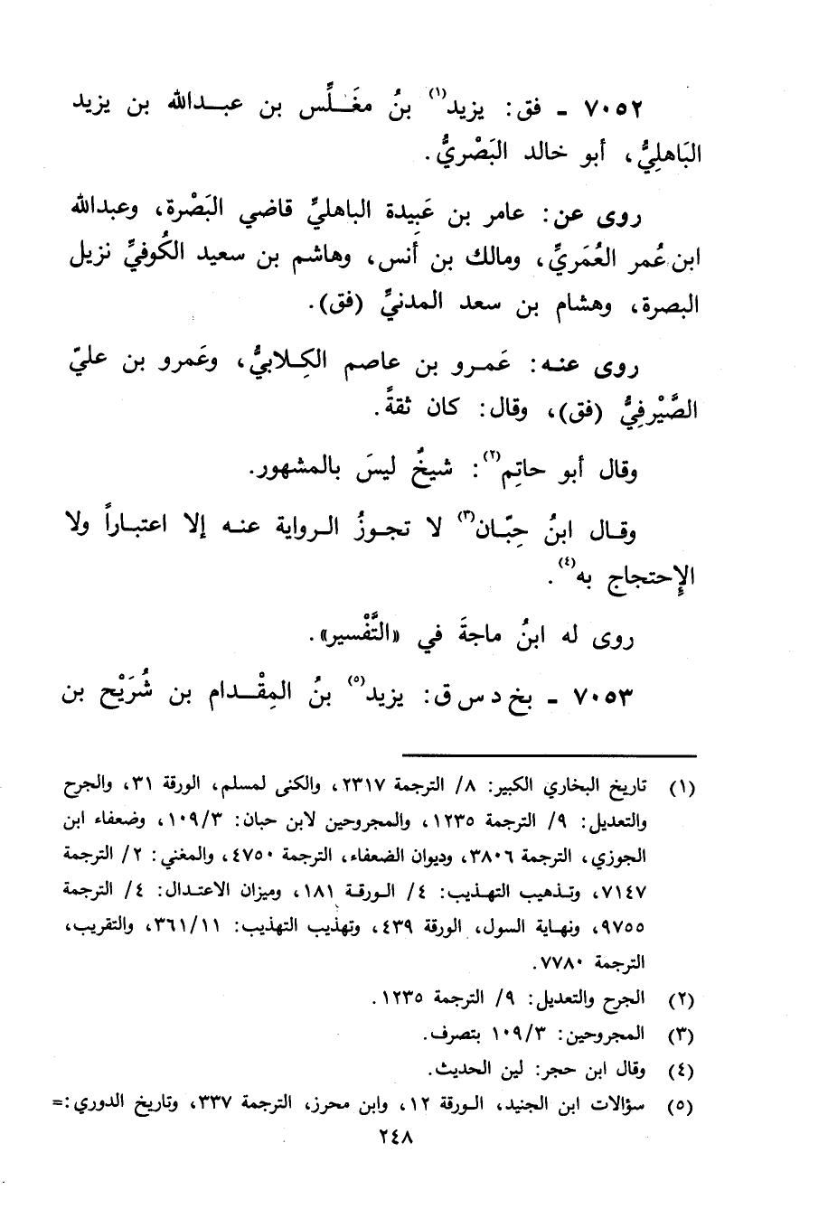 7052 - فق: يزيد بن مغلس بن عَبد اللَّهِ بن يزيد الباهلي (1) ، أبو خالد البَصْرِيّ.