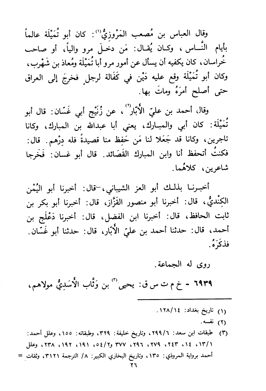 6939 - خ م ت س ق: يحيى بن وثاب الأسدي مولاهم (3) ،