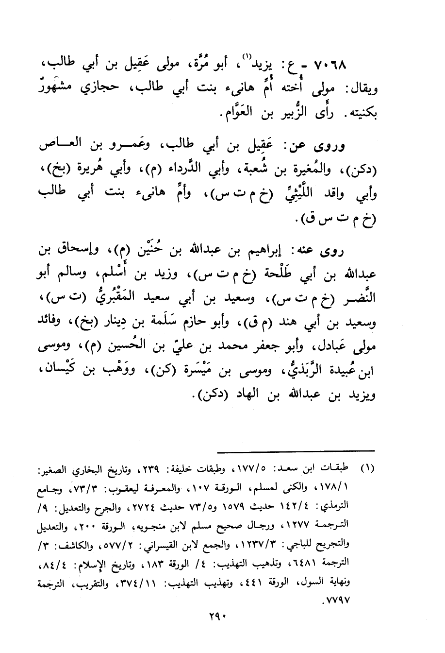 7068 - ع: يزيد، أَبُو مرة (1) ، مولى عقيل بْن أَبي طالب، ويُقال: مولى أخته أم هانئ بنت أَبِي طالب، حجازي مشهور بكنيته. رأى الزبير بْن العوام.