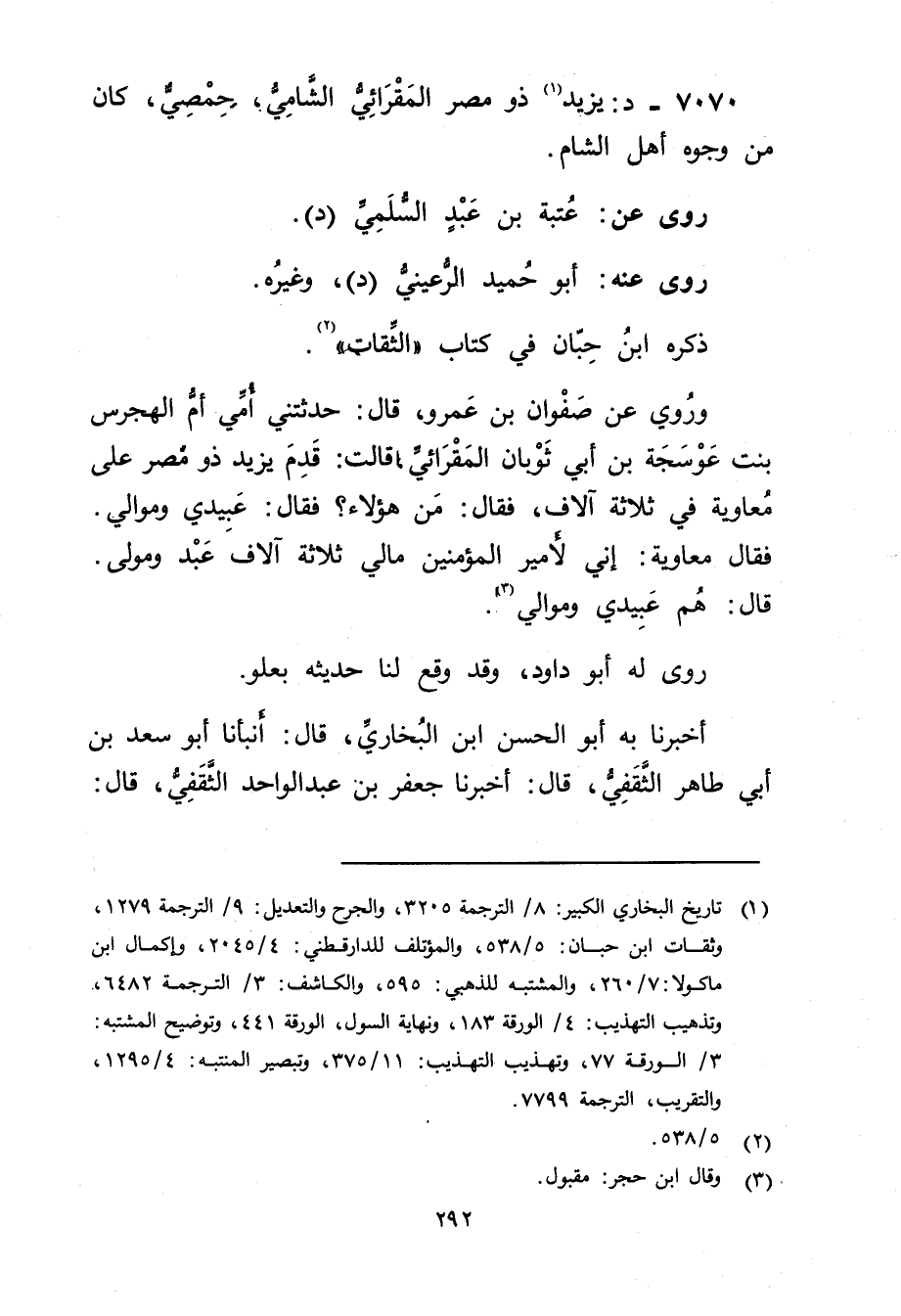 7070 - د: يزيد ذو مصر المقرائي الشامي (1) ، حمصي، كَانَ من وجوه أهل الشام.