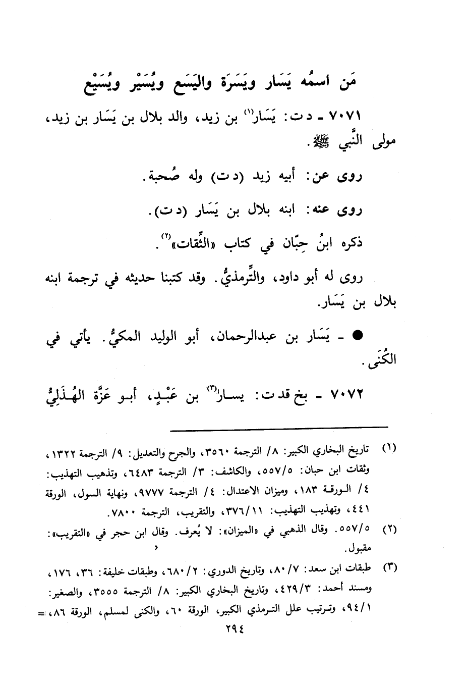 7071 - د ت: يسار بن زيد (1) ، والد بلال بْن يسار بْن زيد، مولى النَّبِيّ صلى الله عليه وسلم.
