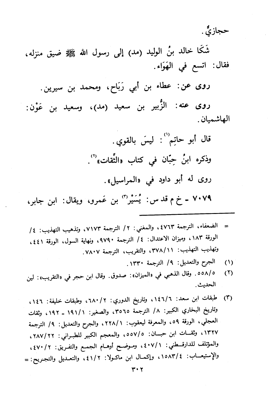= الضعفاء، الترجمة 4763، والمغني: 2 / الترجمة 7173، وتذهيب التهذيب: 4 / الورقة 183، وميزان الاعتدال: 4 / الترجمة 9790، ونهاية السول، الورقة 441، وتهذيب التهذيب: 11 / 378، والتقريب، الترجمة 7807.