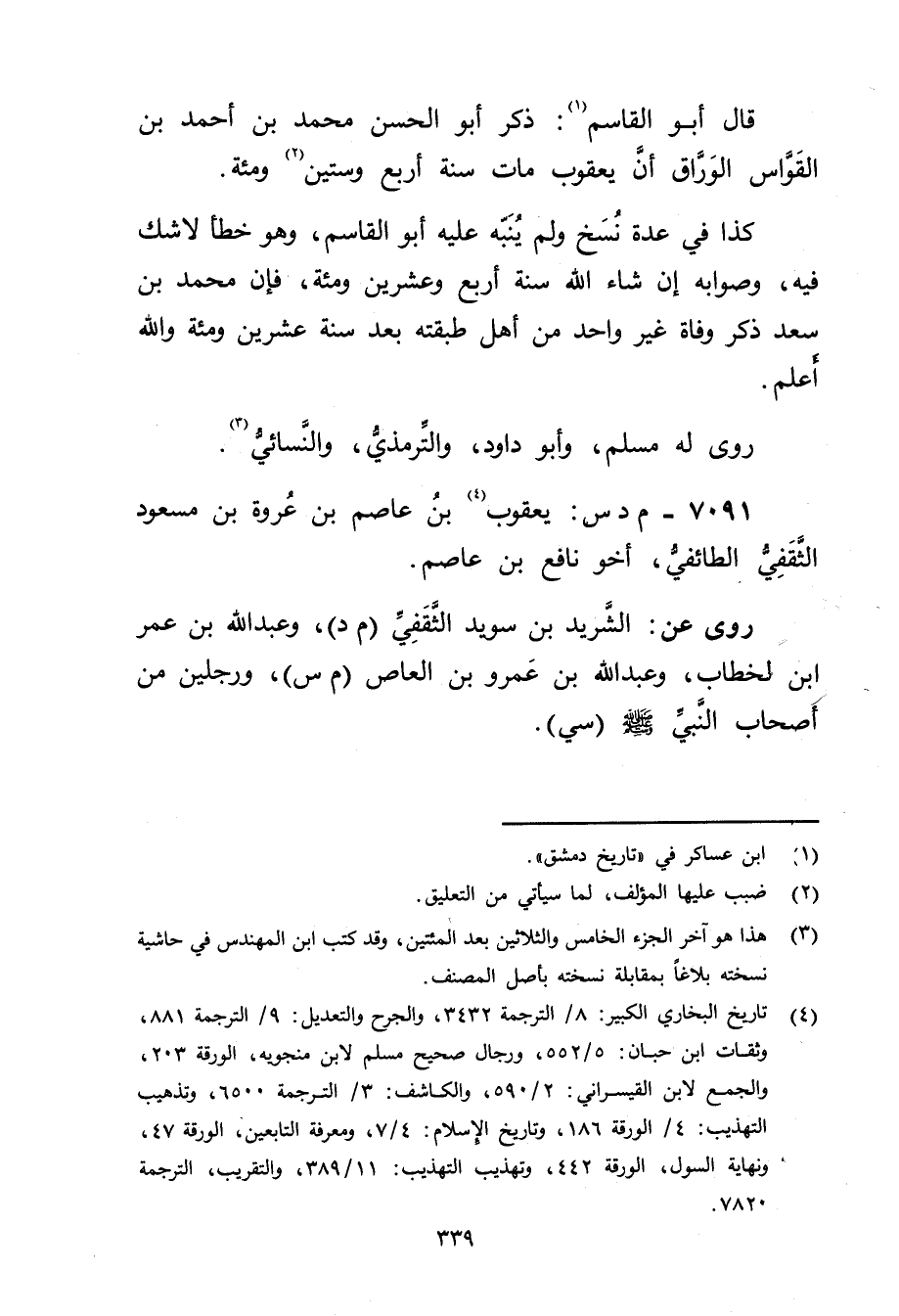 7091 - م د س: يعقوب بن عاصم بْن عروة بْن مسعود الثقفي الطائفي (4) ، أخو نافع بْن عاصم.