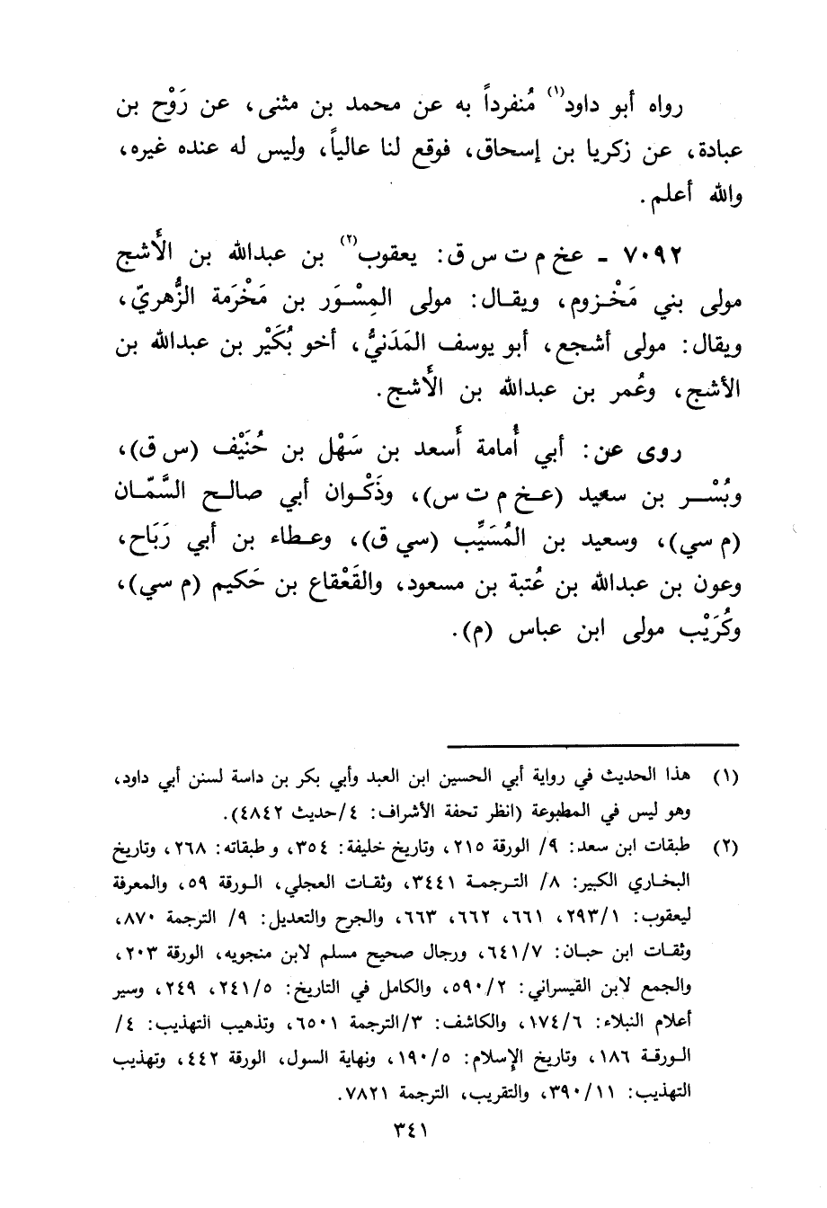 (2) طبقات ابن سعد: 9 / الورقة 215، وتاريخ خليفة: 354، وطبقاته: 268، وتاريخ البخاري الكبير: 8 / الترجمة 3441، وثقات العجلي، الورقة 59، والمعرفة ليعقوب: 1 / 293، 661، 662، 663، والجرح والتعديل: 9 / الترجمة 870، وثقات ابن حبان: 7 / 641، ورجال صحيح مسلم لابن منجويه، الورقة 203، والجمع لابن القيسراني: 2 / 590، والكامل في التاريخ: 5 / 241، 249، وسير أعلام النبلاء: 6 / 174، والكاشف: 3 / الترجمة 6501، وتذهيب التهذيب: 4 / الورقة 186، وتاريخ الاسلام: 5 / 190، ونهاية السول، الورقة 442، وتهذيب التهذيب: 11 / 390، والتقريب، الترجمة 7821.