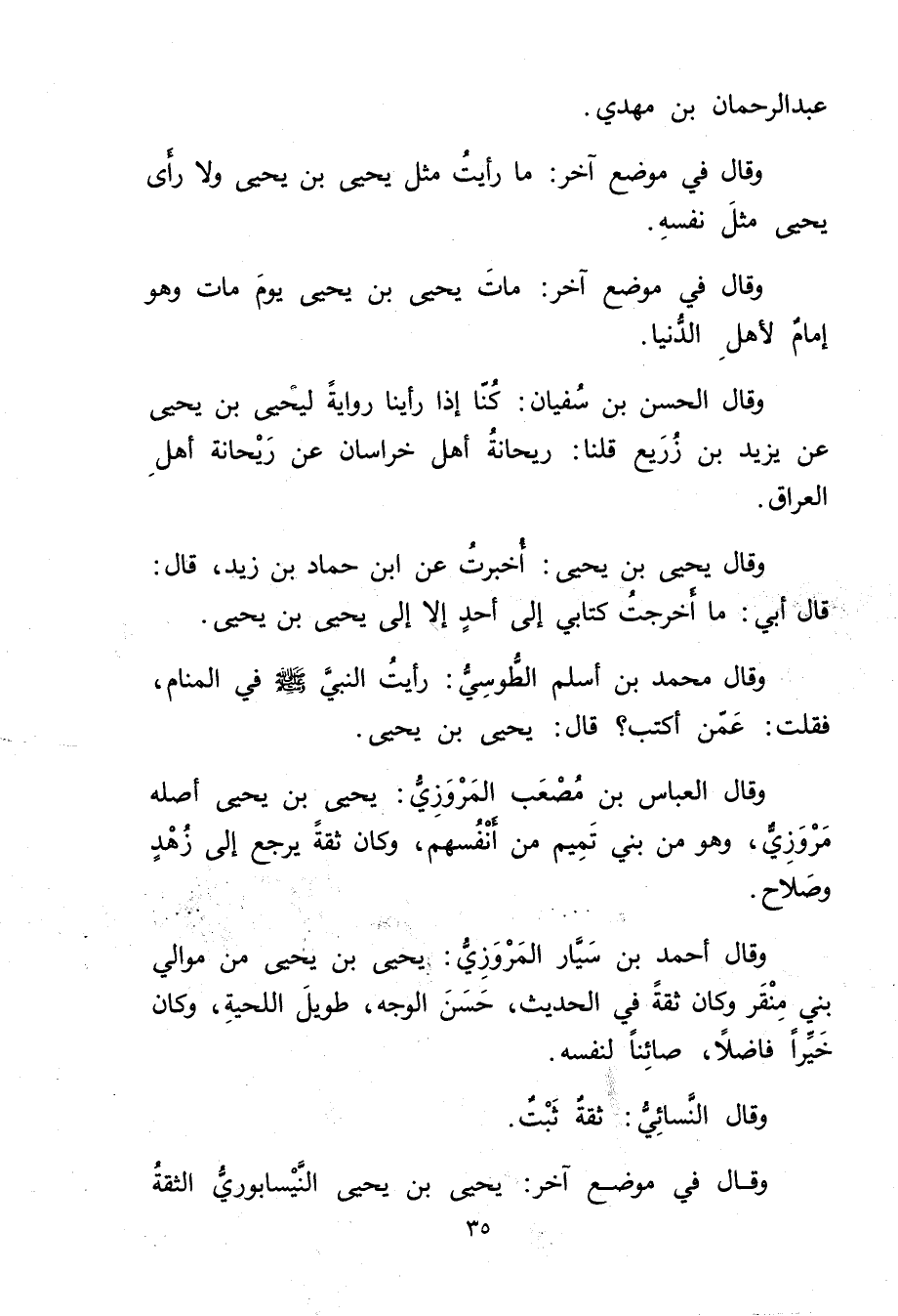 وَقَال فِي موضع آخر: ما رأيت مثل يحيى بْن يحيى ولا أرى يحيى مثل نفسه.