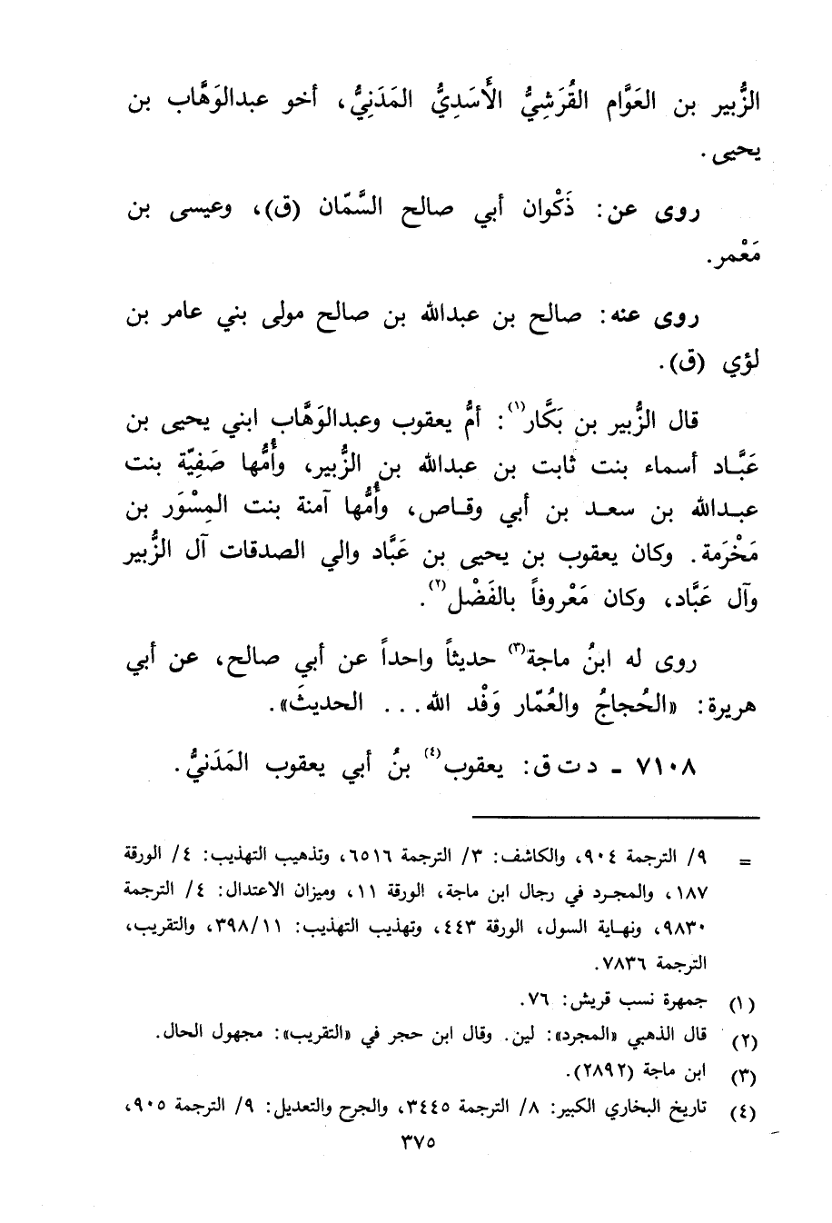 = 9 / الترجمة 904، والكاشف: 3 / الترجمة 6516، وتذهيب التهذيب: 4 / الورقة 187، والمجرد في رجال ابن ماجة، الورقة 11، وميزان الاعتدال: 4 / الترجمة 9830، ونهاية السول، الورقة 443، وتهذيب التهذيب: 11 / 398، والتقريب، الترجمة 7836.