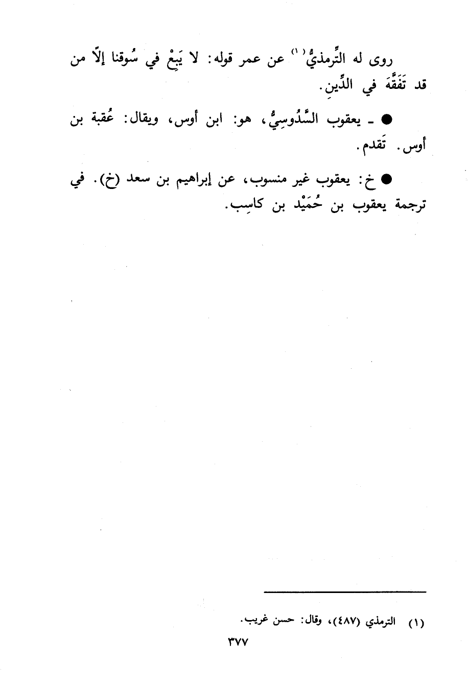 روى لَهُ التِّرْمِذِيّ (1) عَن عُمَر قوله: لا يبع فِي سوقنا إلا من قد تفقه فِي الدين.