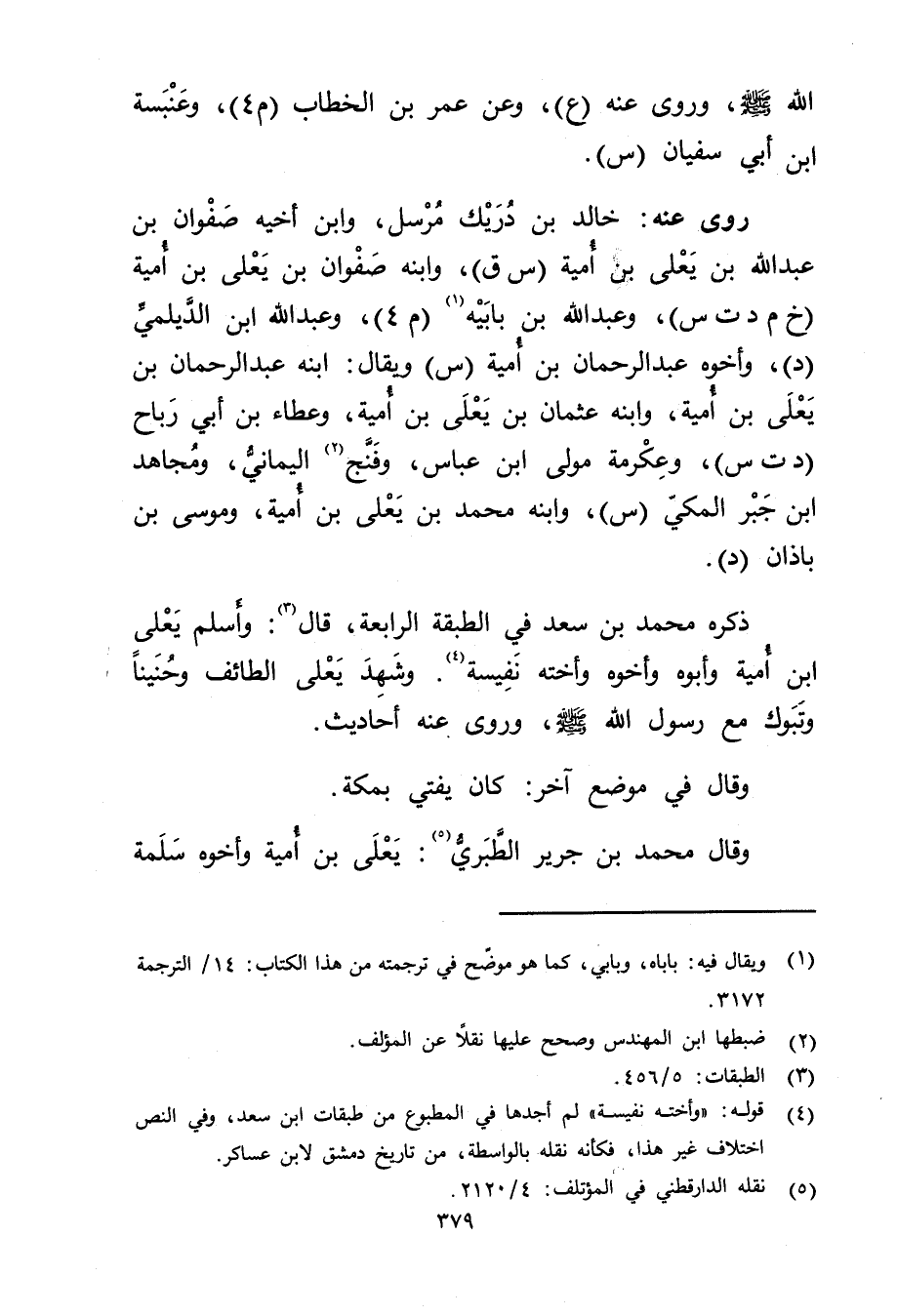 وَقَال مُحَمَّد بْن جرير الطبري (5) : يَعْلَى بْن أمية وأخوة سلمة
