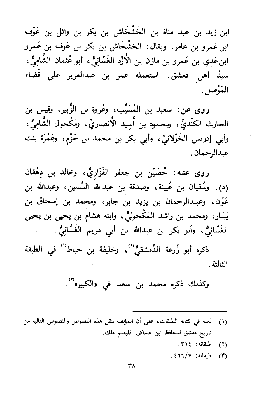 (1) لعله في كتابه الطبقات، على أن المؤلف ينقل هذه النصوص والنصوص التالية من تاريخ دمشق للحافظ ابن عساكر، فليعلم ذلك.