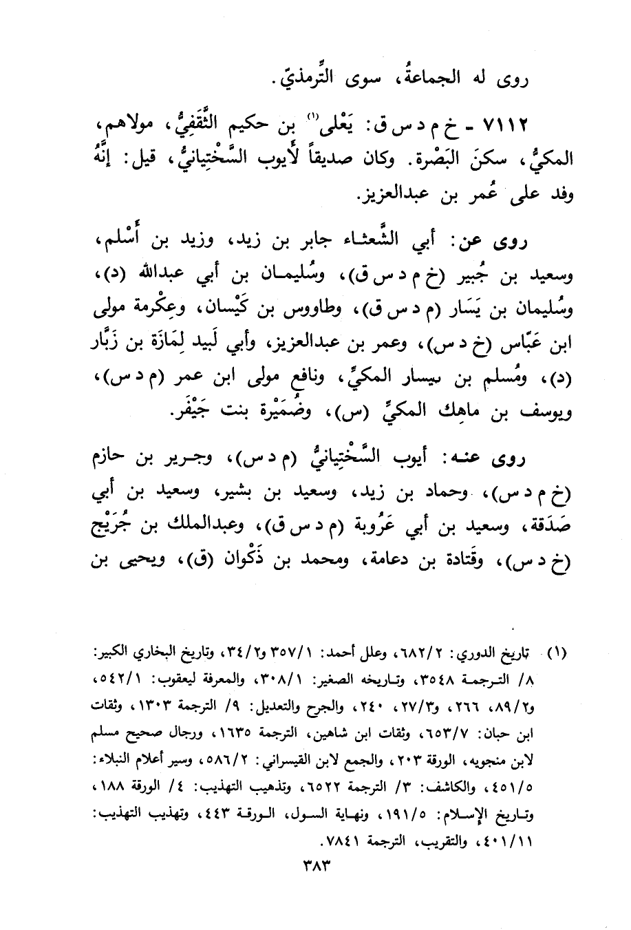 7112 - خ م د س ق: يَعْلَى بن حكيم الثقفي (1) ، مولاهم، المكي، سكن البصرة.