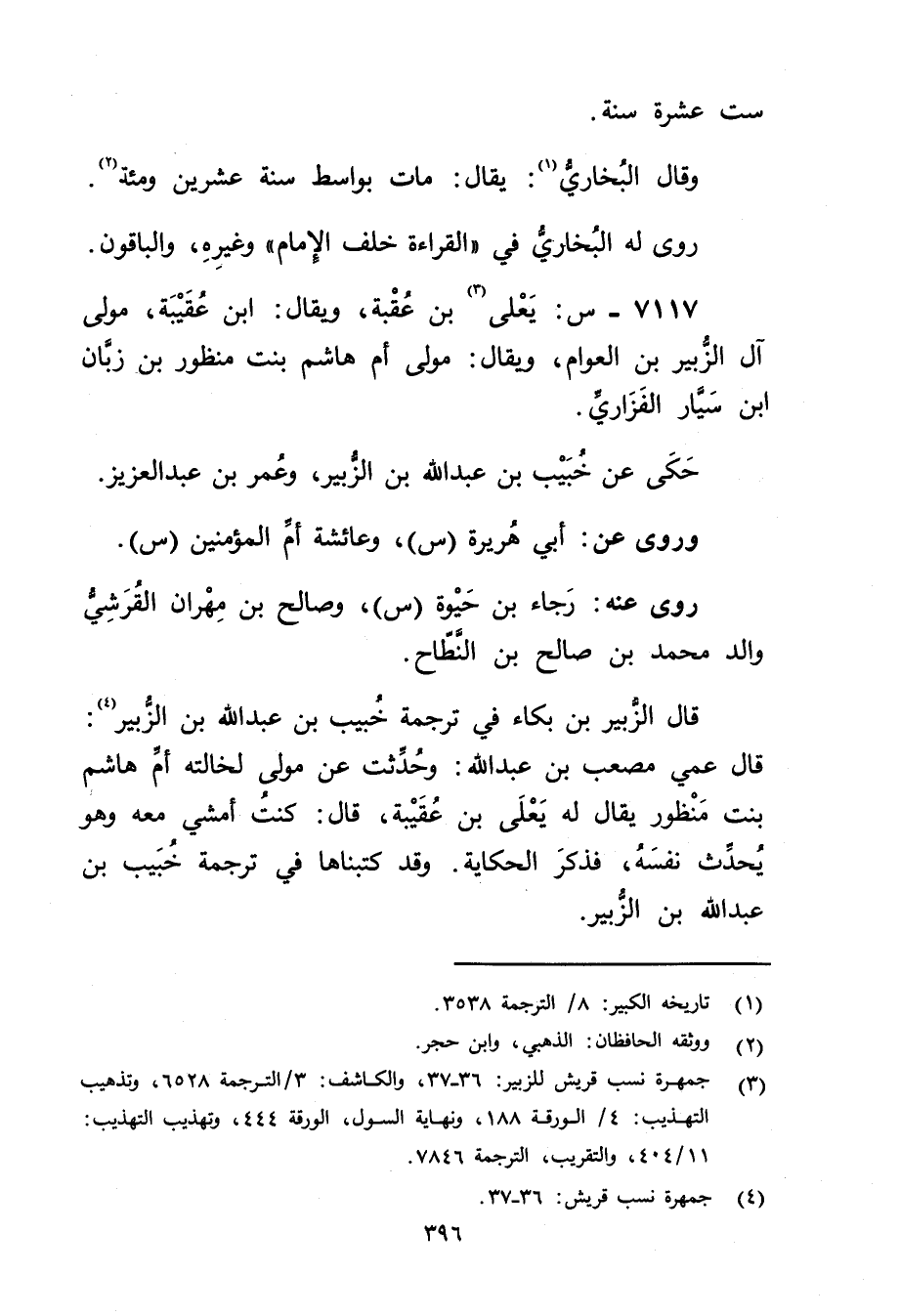 (3) جمهرة نسب قريش للزبير: 36 - 37، والكاشف: 3 / الترجمة 6528، وتذهيب التهذيب: 4 / الورقة 188، ونهاية السول، الورقة 444، وتهذيب التهذيب: 11 / 404، والتقريب الترجمة 7846.