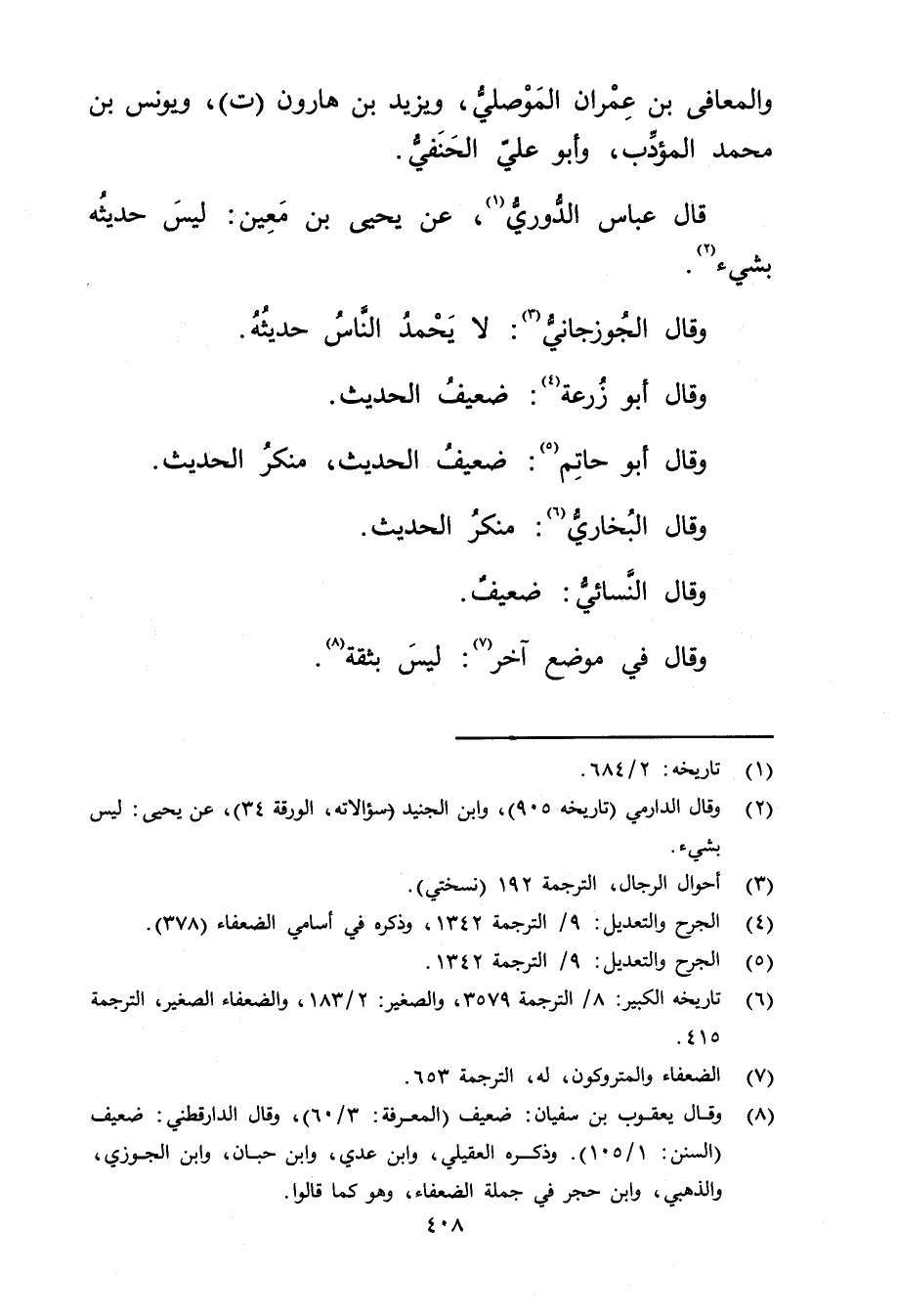 (2) وَقَال الدارمي (تاريخه 905) ، وابن الجنيد (سؤالاته، الورقة 34) ، عن يحيى: ليس بشيءٍ.