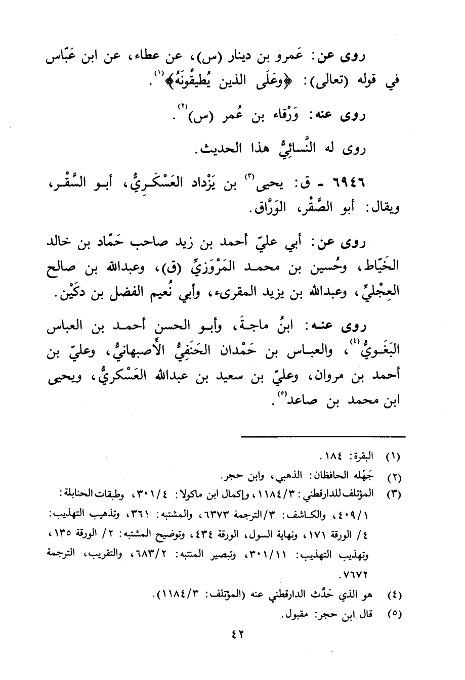 6946 - ق: يحيى بن يزداد العسكري (3) ، أبوالسقر، ويُقال: أَبُو الصقر، الوراق.