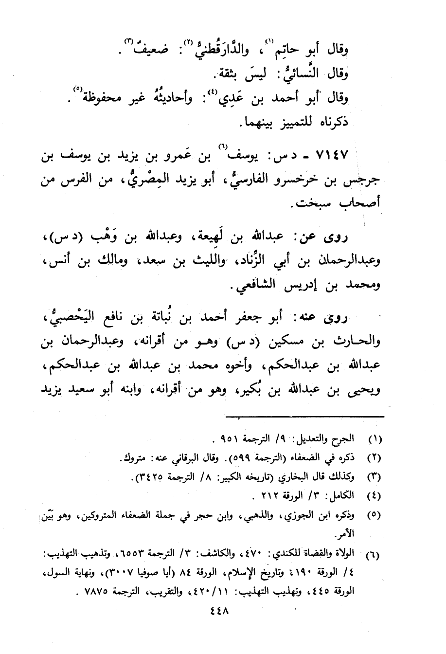 7147 - د س: يوسف بن عَمْرو بن يزيد بْن يوسف بْن جرجس بن خرخسرو الفارسي، أَبُو يزيد المِصْرِي (6) ، من الفرس من أصحاب سبخت.