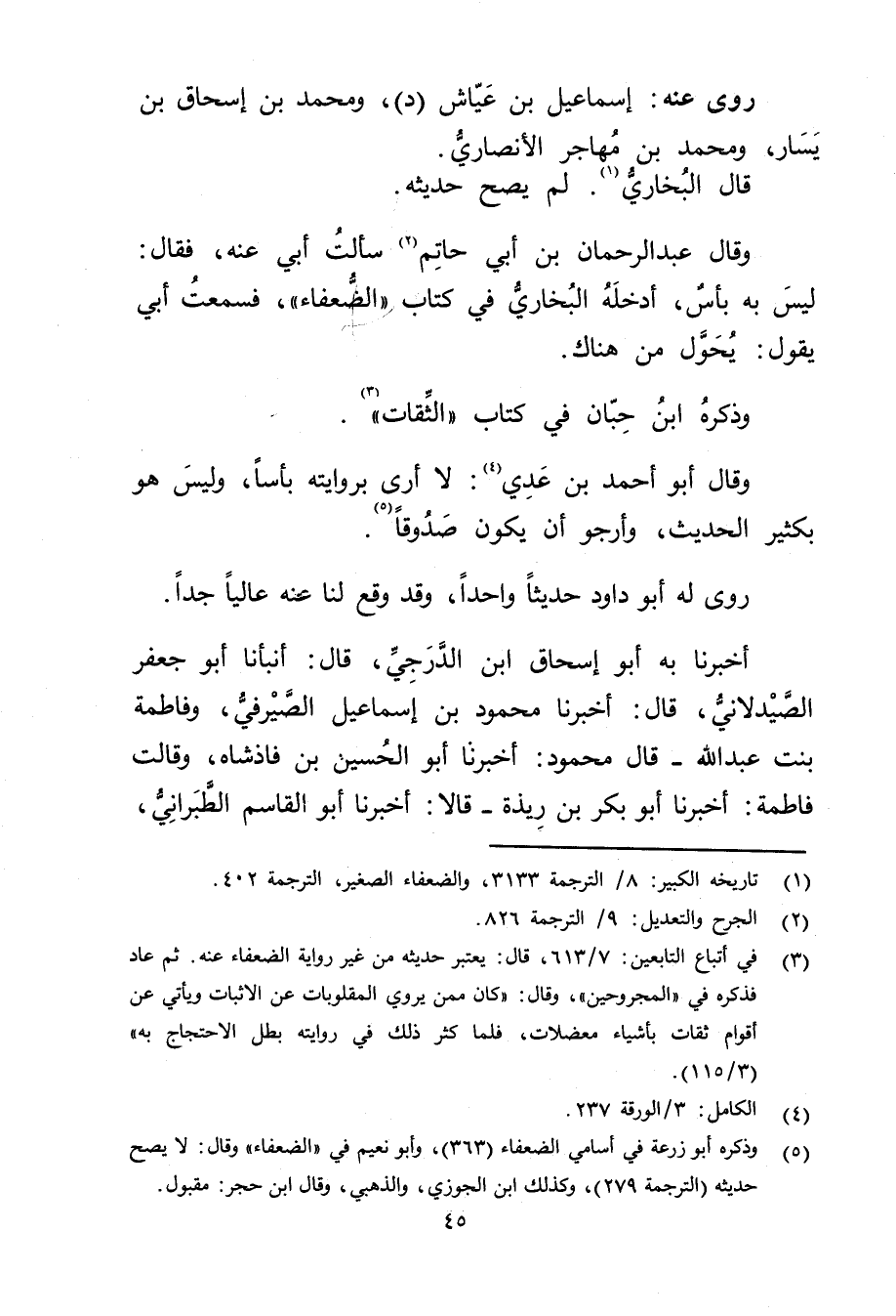(1) تاريخه الكبير: 8 / الترجمة 3133، والضعفاء الصغير، الترجمة 402.