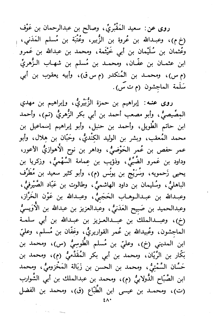 رَوَى عَنه: إبراهيم بْن حمزة الزبيري، وإبراهيم بْن مهدي المصيصي، وأبو مصعب أحمد بْن أَبي بكر الزُّهْرِيّ (تم) ، وأحمد بْن حاتم الطويل، وأحمد بْن حنبل، وأبو إِبْرَاهِيم إسماعيل بْن مُحَمَّد المعقب، وبشر بْن الوليد الكندي، وحبان بْن هلال، وأبو عُمَر حَفْص بْن عُمَر الحوضي، وداهر بْن نوح الأهوازي الأَعور، وداود بن عَمْرو الضبي، وذؤيب بْن عمامة السهمي، وزكريا بْن يحيى زحمويه، وسريج بْن يونس (م) ، وأبو كثير سَعِيد بْن مطرف الباهلي، وسُلَيْمان بْن داود الهاشمي، وطالوت بْن عباد الصيرفي، وعَبد الله بْن عَبْد الوهاب الحجبي، وعَبد اللَّهِ بْن عون الخراز، وعبد الحميد بْن صبيح العدني، وعبد العزيز بْن عَبد اللَّهِ بْن الأُوَيسي (خ) ، وعبد الملك بْن عَبْد الْعَزِيزِ بْن عَبد اللَّهِ بْن أَبي سَلَمَة الماجشون، وعُبَيد اللَّه بْن عُمَر القواريري، وعفان بْن مسلم، وعلي ابن الْمَدِينِيّ (خ) ، وعلي بْن مُسْلِم الطوسي (س) ، ومحمد بْن بكار بْن الريان، ومحمد بْن أَبي بكر المقدمي (م) ، ومحمد بْن حسان السمتي، ومحمد بْن الحسن بن زبالة المخزومي، ومحمد ابن الصباح الدولابي (م) ، ومحمد بْن عَبد المَلِك بْن أَبي الشوارب (ت) ، ومُحَمَّد بن عيسى ابن الطباع (ق) ، ومحمد بن الفضل
