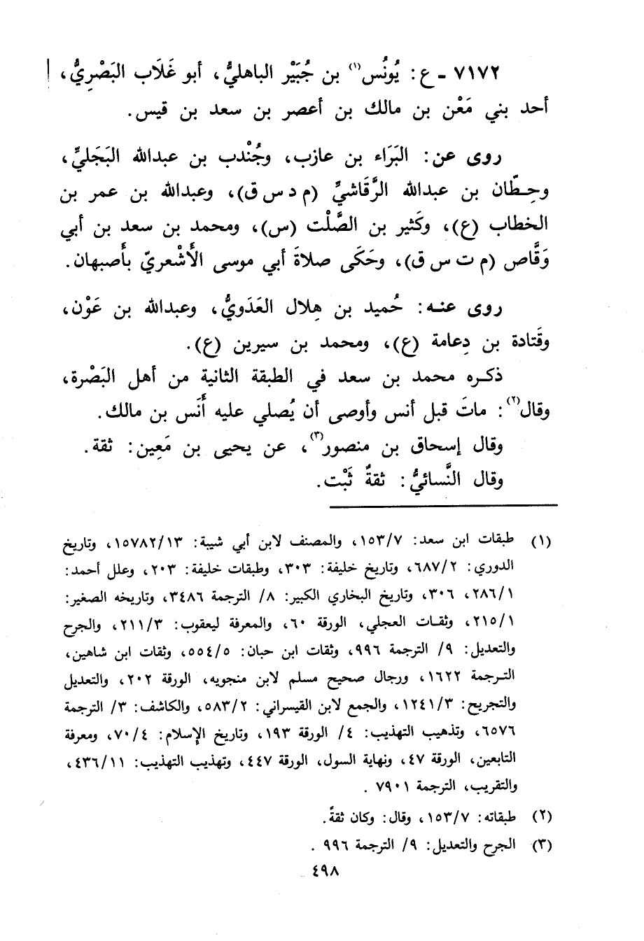 7172 - ع: يونس بن جبير الباهلي (1) ، أَبُو غلاب البَصْرِيّ، أحد بني معن بْن مالك بْن أعصر بْن سعد بْن قيس.