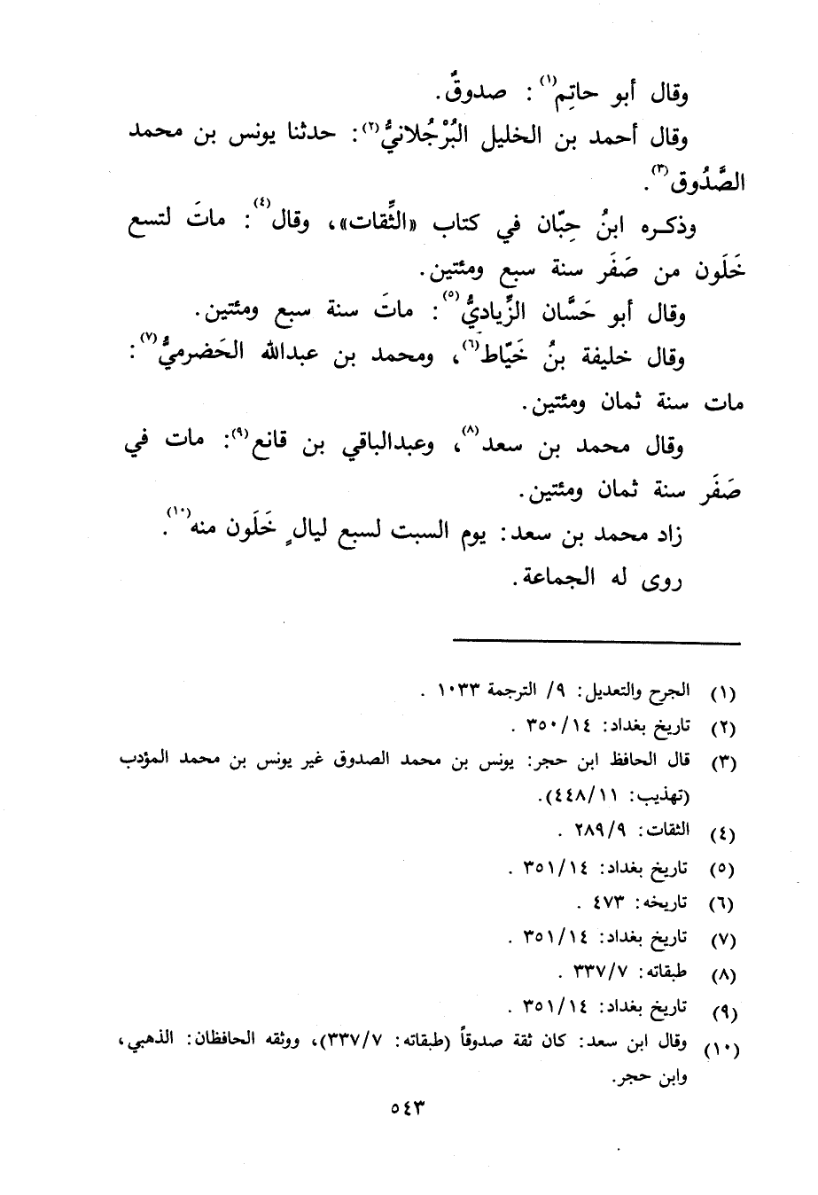 (3) قال الحافظ ابن حجر: يونس بن محمد الصدوق غير يونس بن محمد المؤدب (تهذيب: 11 / 448) .