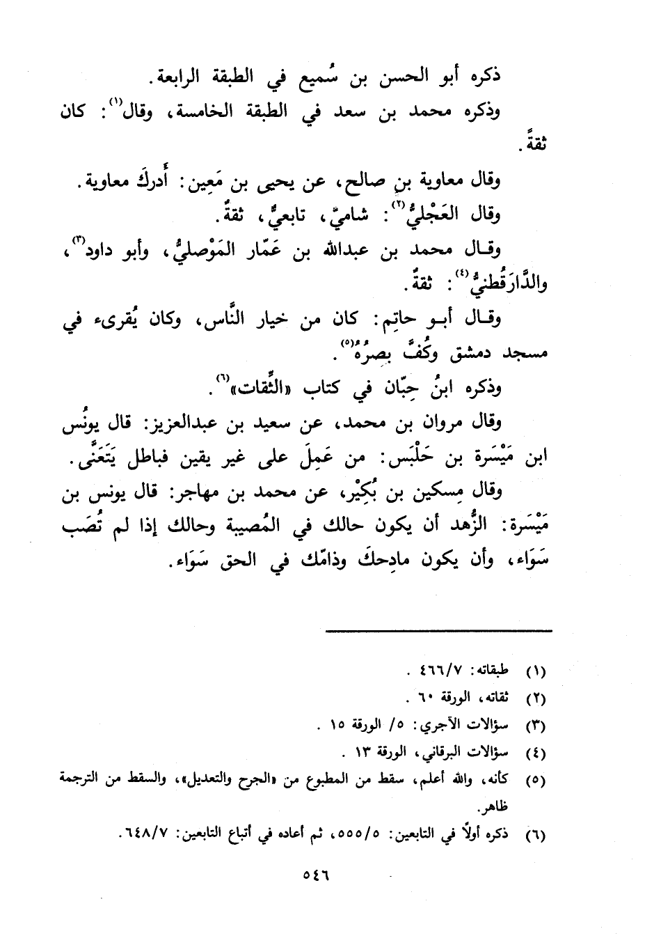 (6) ذكره أولا في التابعين: 5 / 555، ثم أعاده في أتباع التابعين: 7 / 648.
