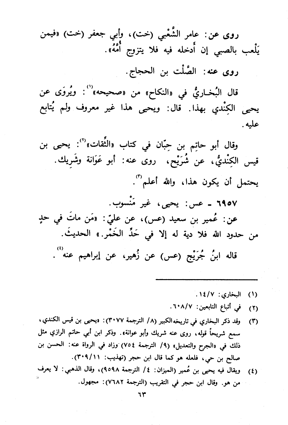 (4) ويُقال فيه يحيى بن عُمَير (الميزان: 4 / الترجمة 9598) ، وَقَال الذهبي: لا يعرف من هو. وَقَال ابن حجر في التقريب (الترجمة 7682) : مجهول.