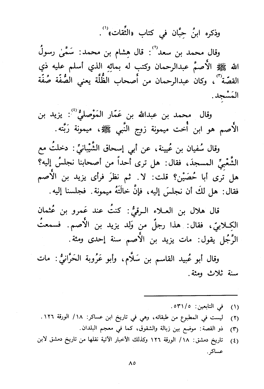 (4) تاريخ دمشق: 18 / الورقة 126 وكذلك الاخبار الآتية نقلها من تاريخ دمشق لابن عساكر.
