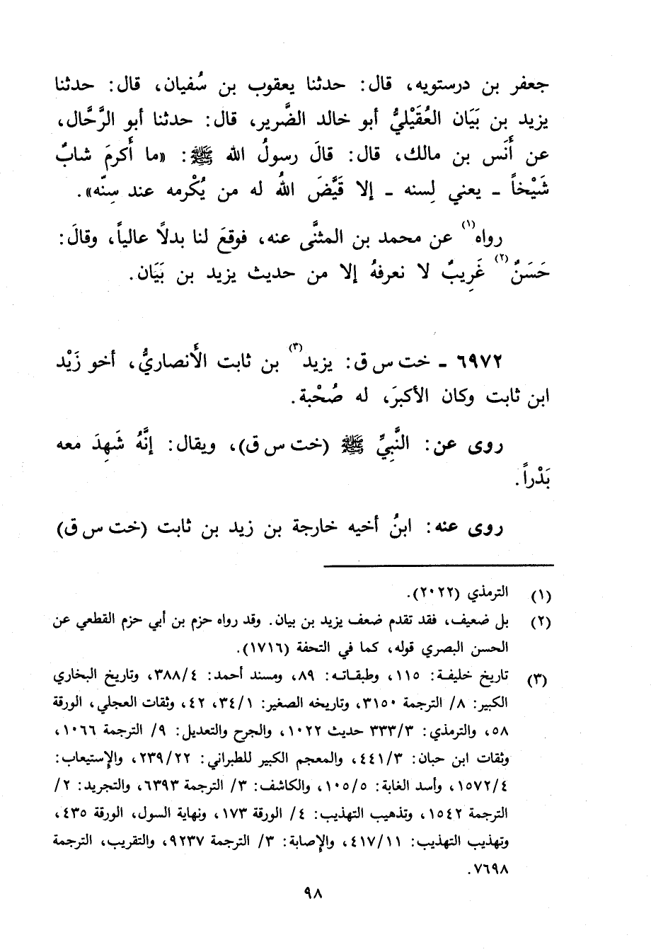 6972 - خت س ق: يزيد بن ثابت الأَنْصارِيّ (3) ، أخو زيد ابن ثابت وكان الأكبر، لَهُ صحبة.