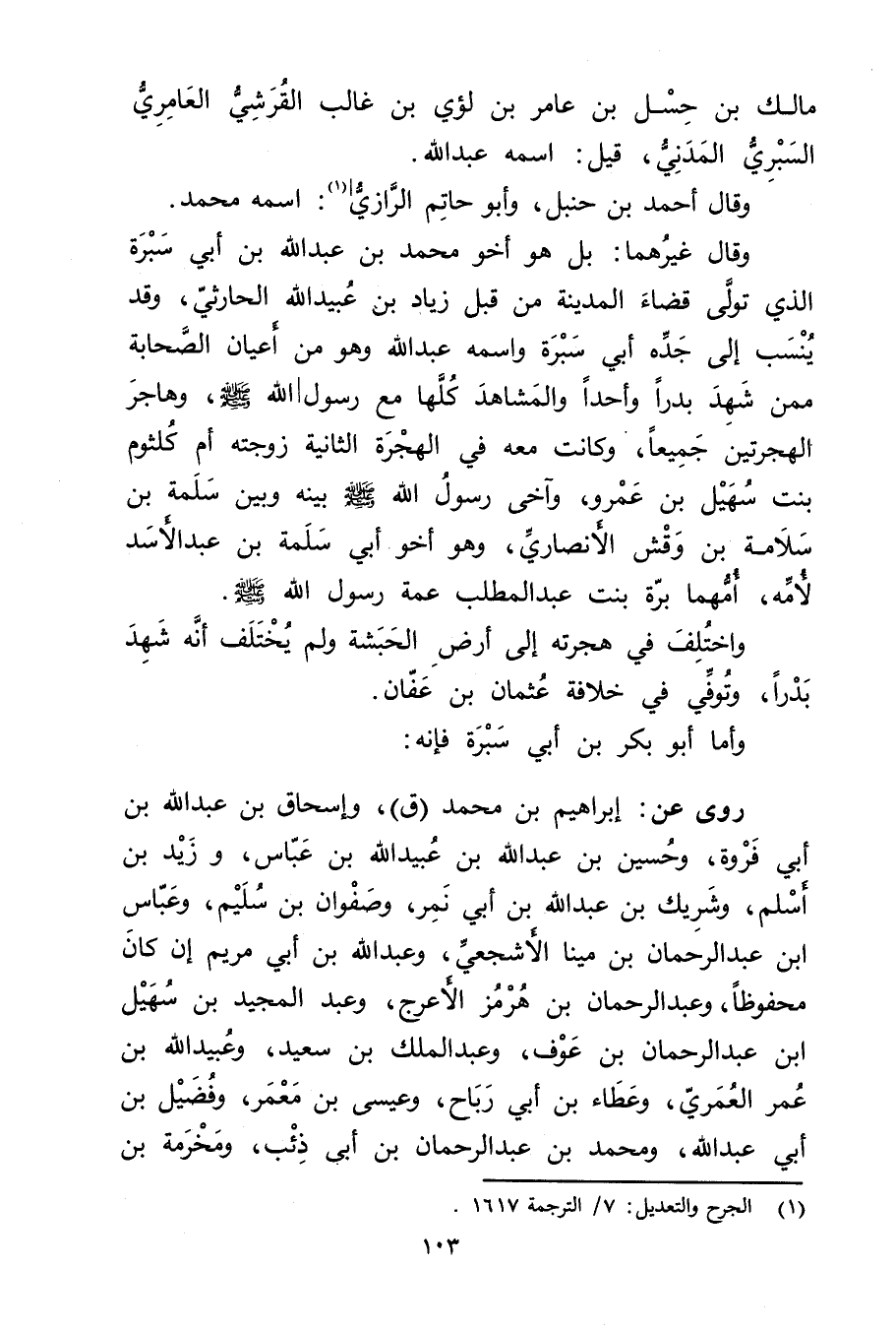 (1) الجرح والتعديل: 7 / الترجمة 1617.