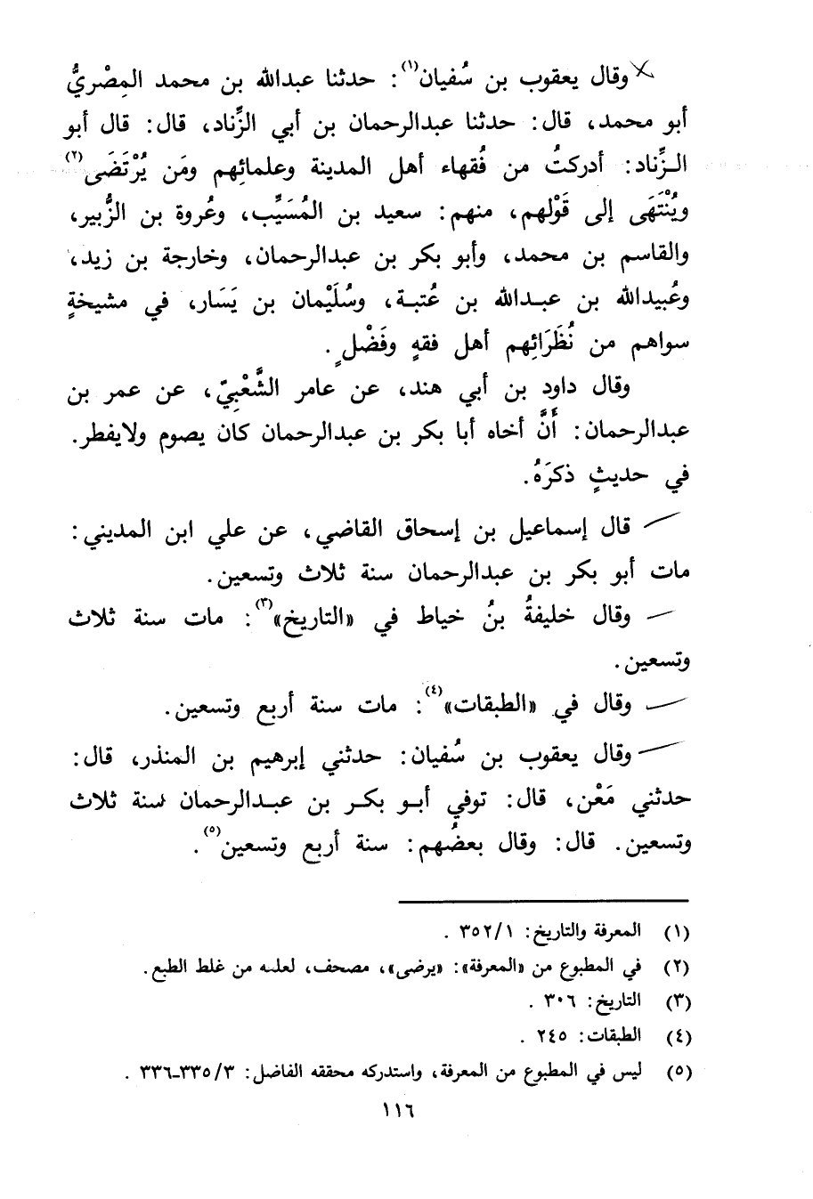 وَقَال يعقوب بْن سفيان: حدثني إِبْرَاهِيم بْن المنذر، قال: حدثني معن، قال: توفي أَبُو بكر بْن عَبْد الرحمن سنة ثلاث وتسعين. قال: وَقَال بعضهم: سنة أربع وتسعين (5) .