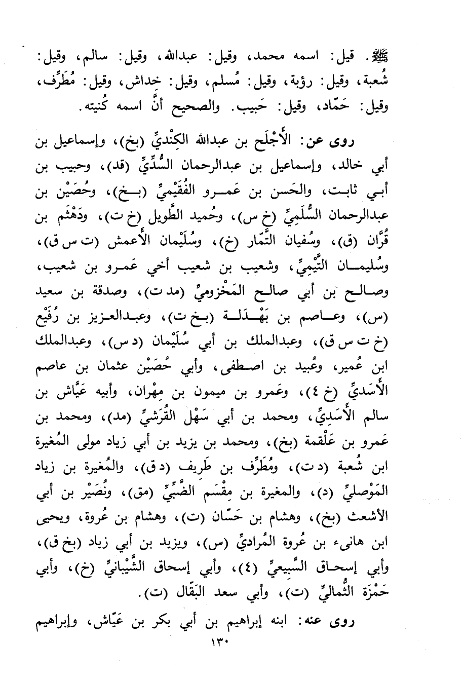 صَلَّى اللَّهُ عَلَيْهِ وسَلَّمَ. قِيلَ: اسمه مُحَمَّد، وقيل: عَبد اللَّه، وقيل: سالم، وقيل: شُعْبَة، وقيل: رؤبة، وقيل: مسلم، وقيل: خداش، وقيل: مطرف، وقيل: حماد، وقيل: حَبِيب. والصحيح أن اسمه كنيته.
