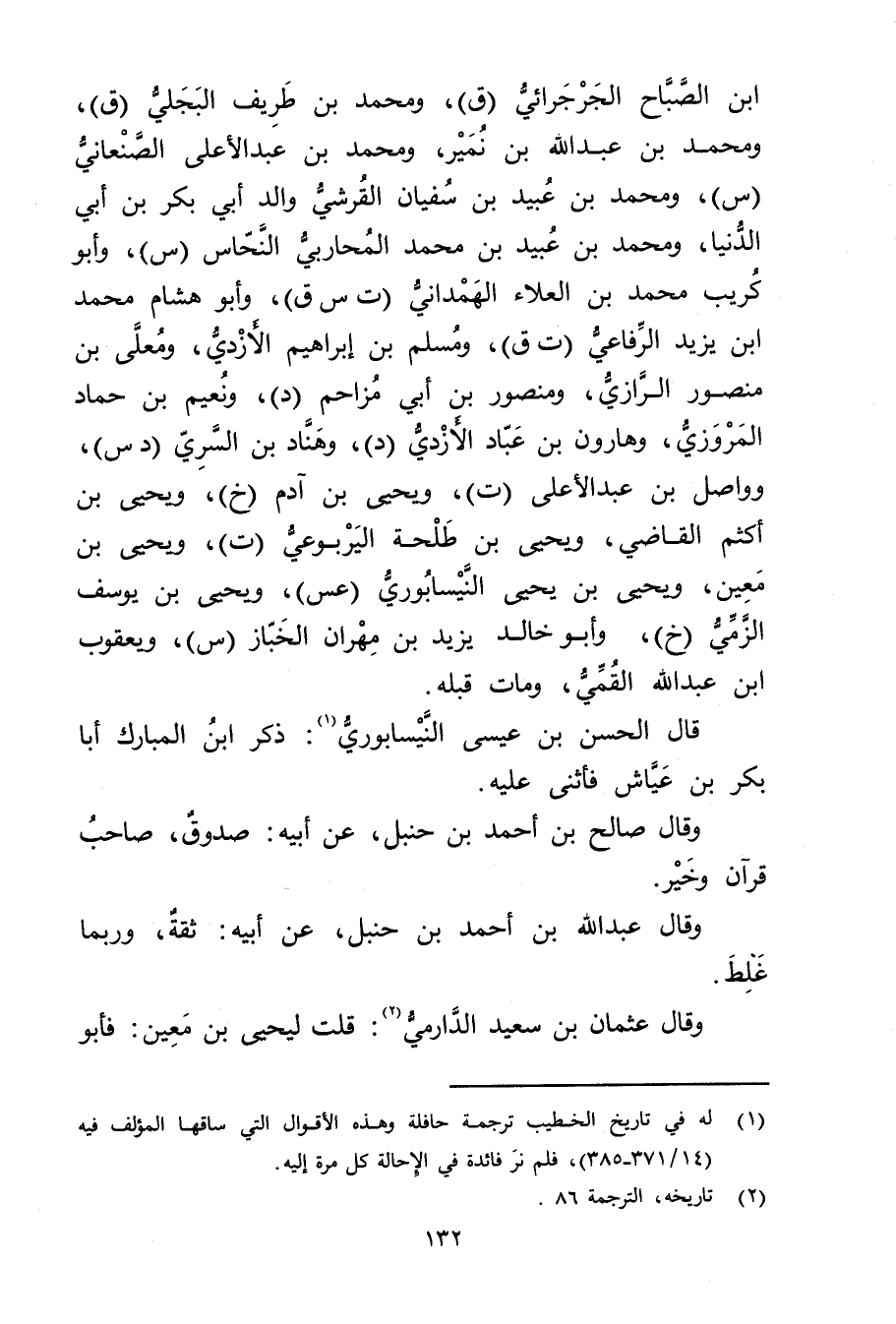 (1) له في تاريخ الخطيب ترجمة حافلة وهذه الاقوال التي ساقها المؤلف فيه (14 / 371 - 385) ، فلم نر فائدة في الاحالة كل مرة إليه.