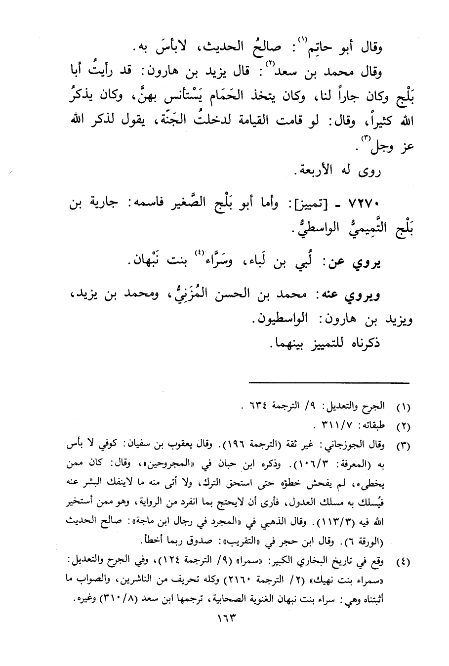 7270 - تمييز: وأما أَبُو بلج الصغير فاسمه: جارية بْن بلج التميمي الواسطي.