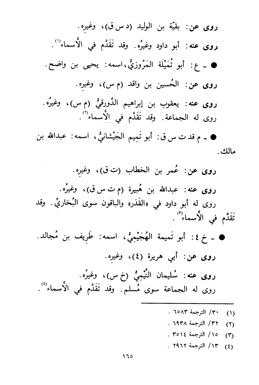 • ع: أبوتميلة المروزي، اسمه: يَحْيَى بْن واضح.