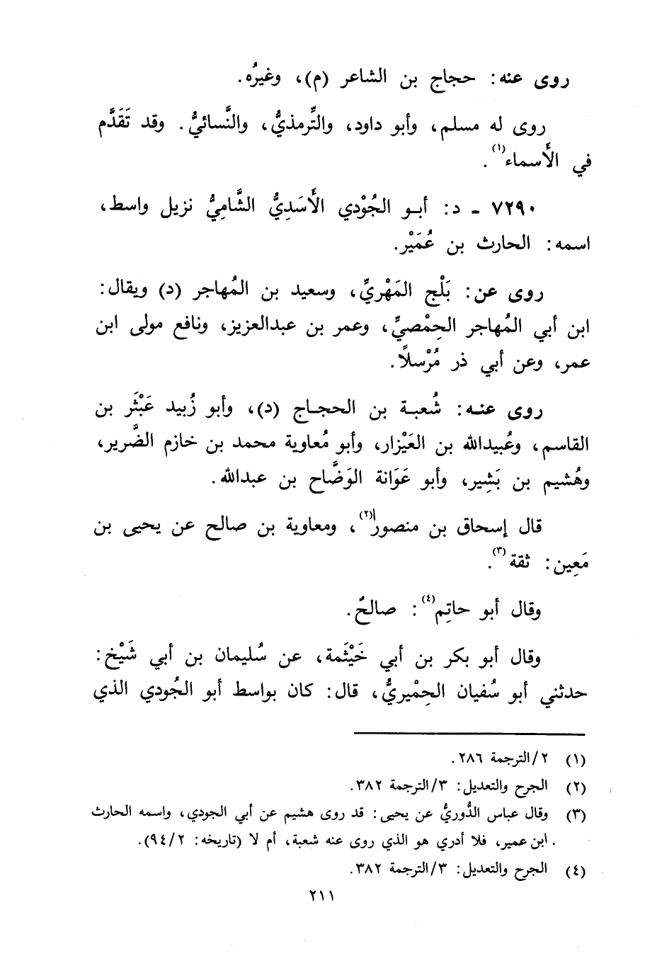 7290 - د: أَبُو الجودي الأسدي الشامي نزيل واسط، اسمه: الحارث بْن عمير.