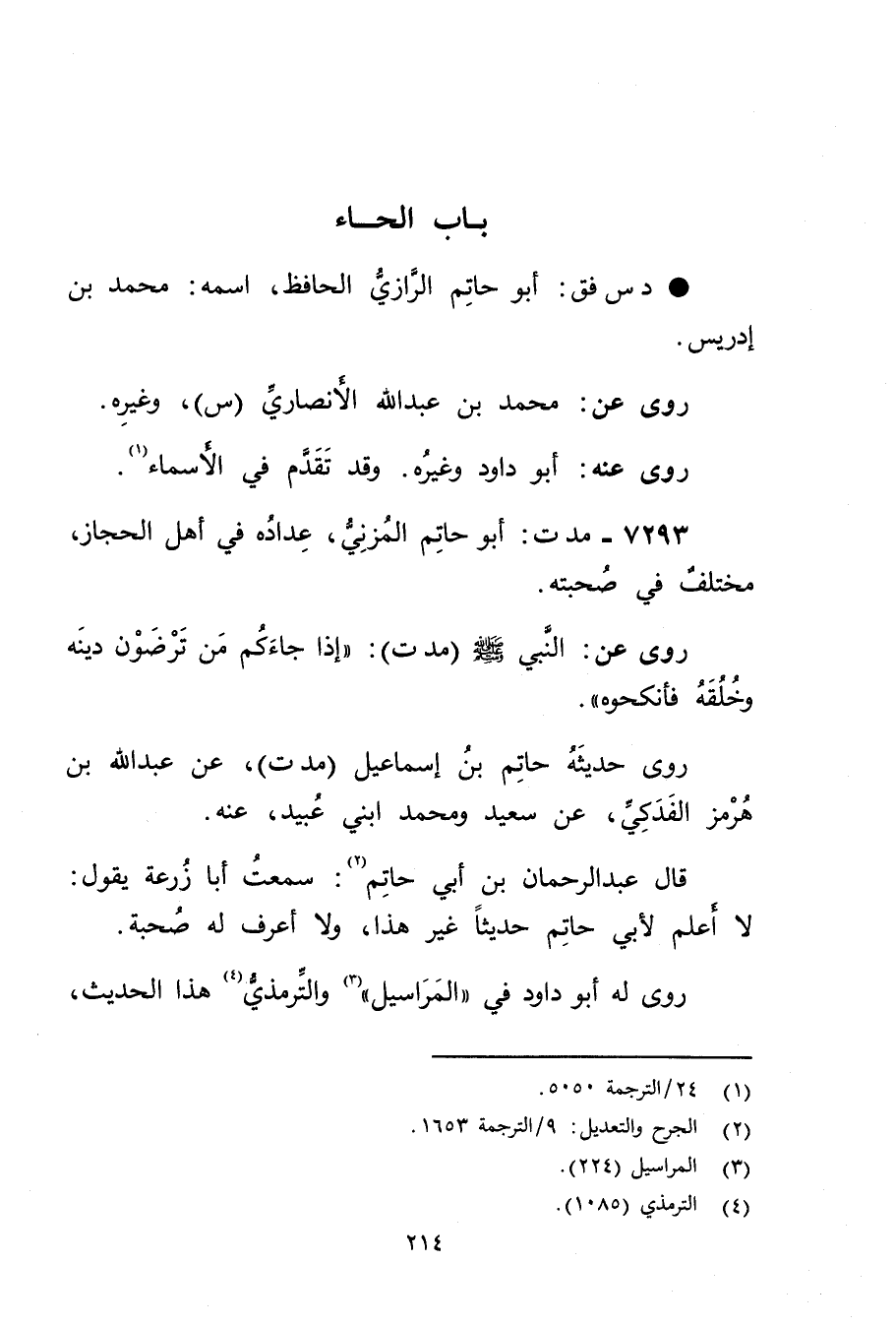 • د س فق: أَبُو حاتم الرازي الحافظ، اسمه: مُحَمَّد بْن إدريس.