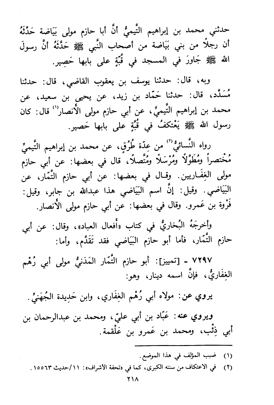 7297 - تمييز: أَبُو حازم التمار المدني مولى أبي رهم الغفاري، فإن اسمه دينار، وهو: