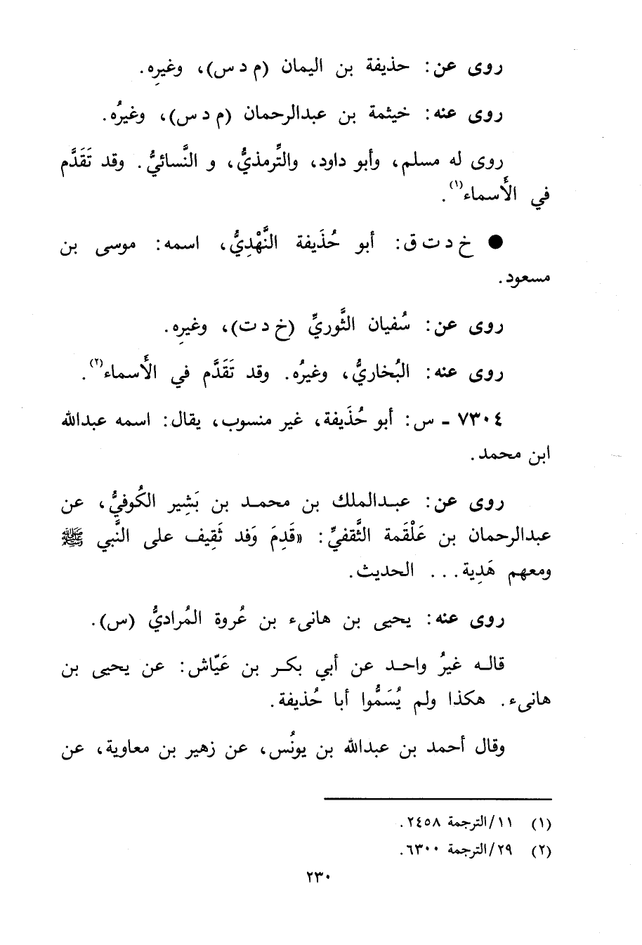 7304 - س: أَبُو حذيفة، غير منسوب، يقال: اسمه عَبد اللَّهِ بْن مُحَمَّد.