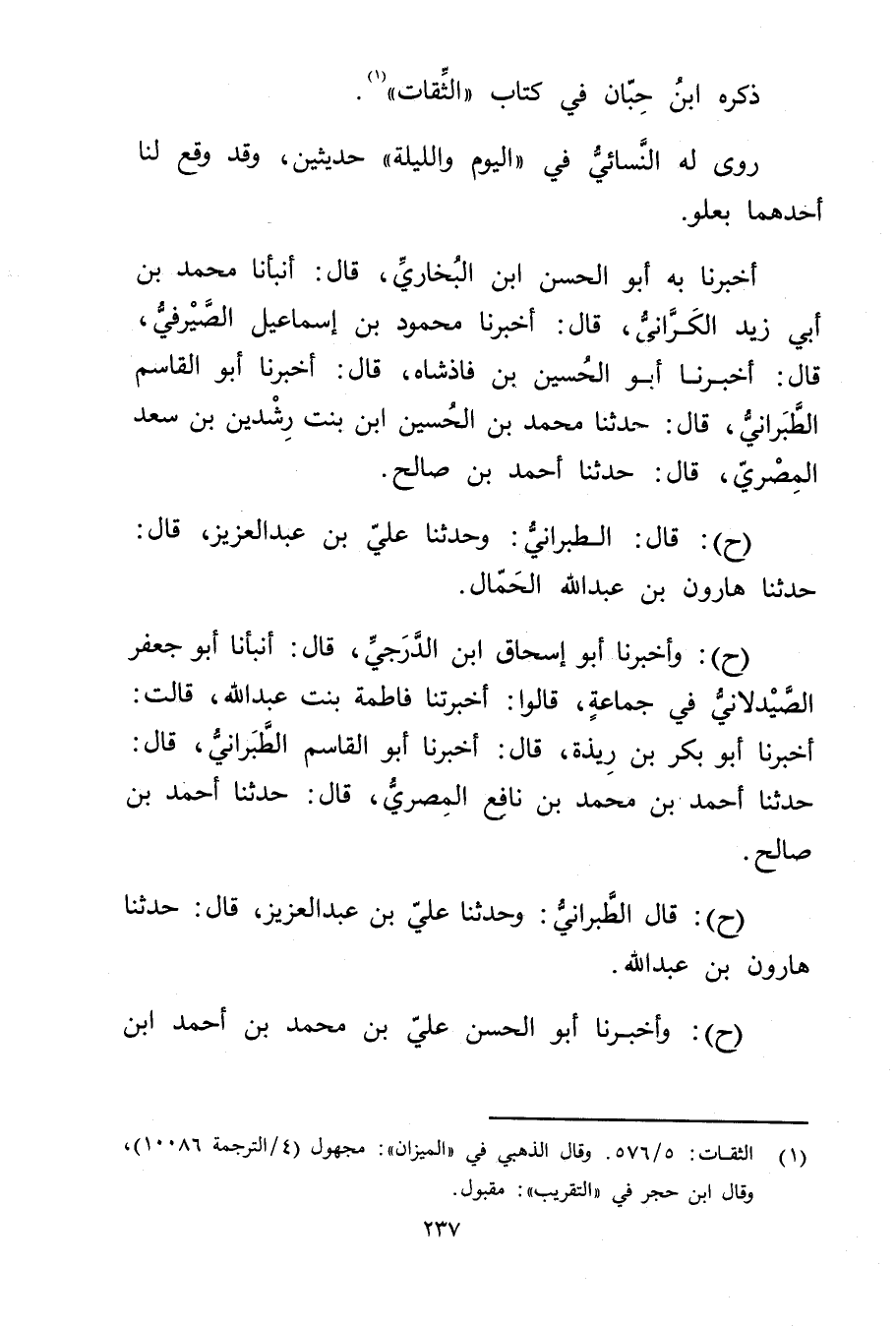 (ح) : قال الطَّبَرَانِيُّ: وحَدَّثَنَا عَلِيّ بْن عبد العزيز، قال: حَدَّثَنَا هَارُونُ بْنُ عَبد اللَّهِ.