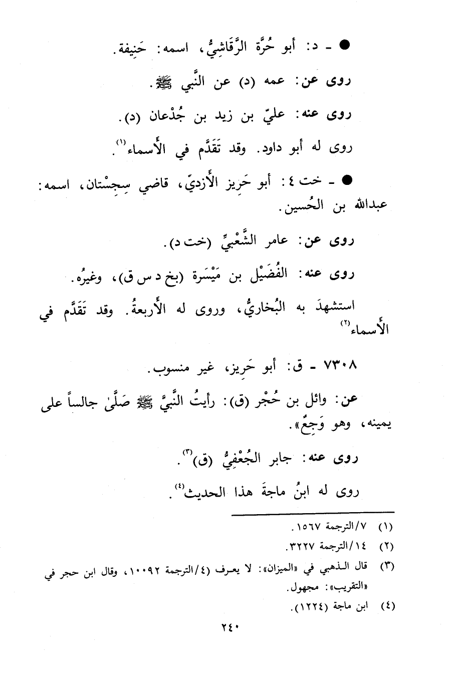 • - د: أَبُو حرة الرقاشي، اسمه: حنيفة.
