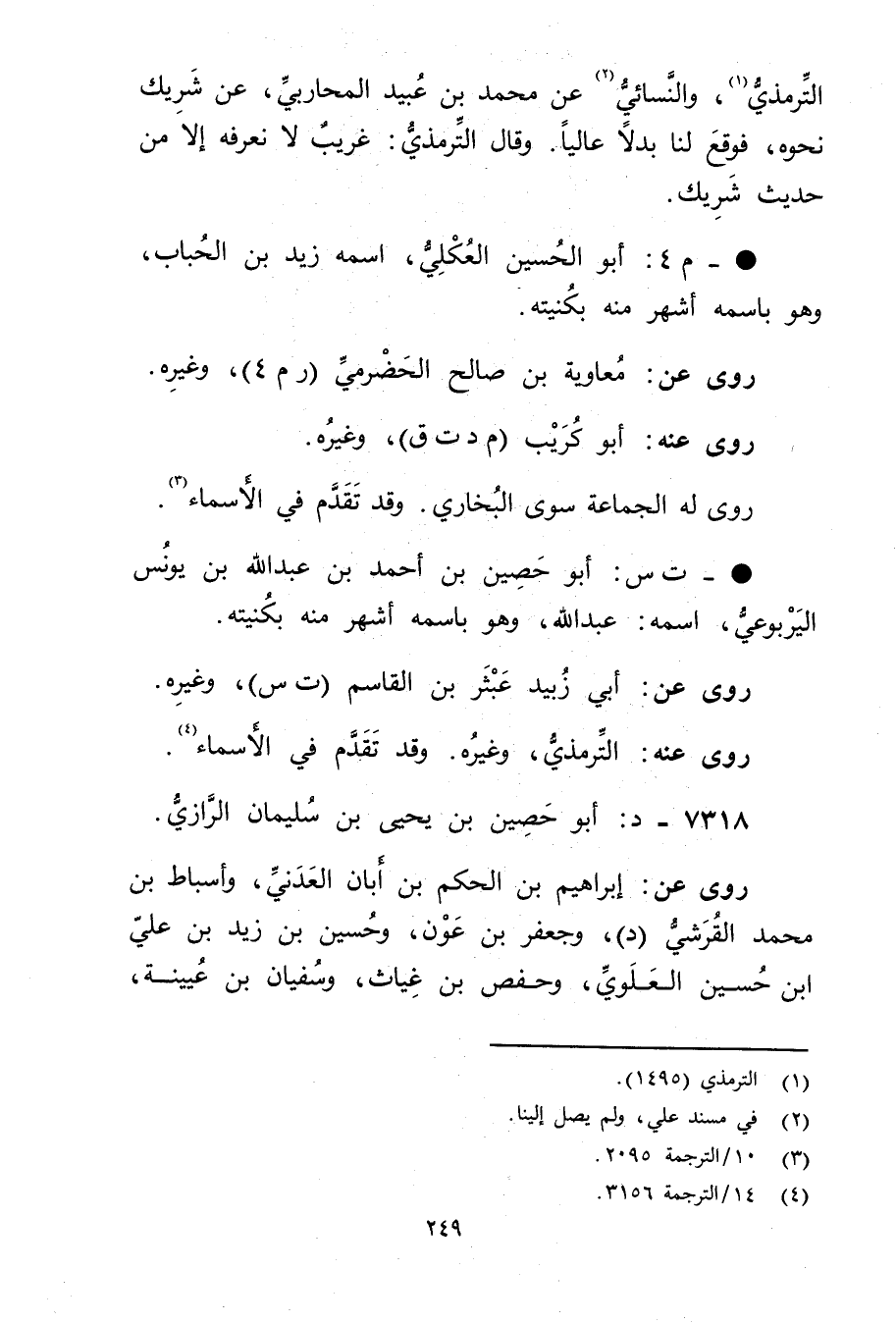 • م 4: أَبُو الْحُسَيْن العكلي، اسمه زيد بْن الحباب، وهو باسمه أشهر منه بكنيته.