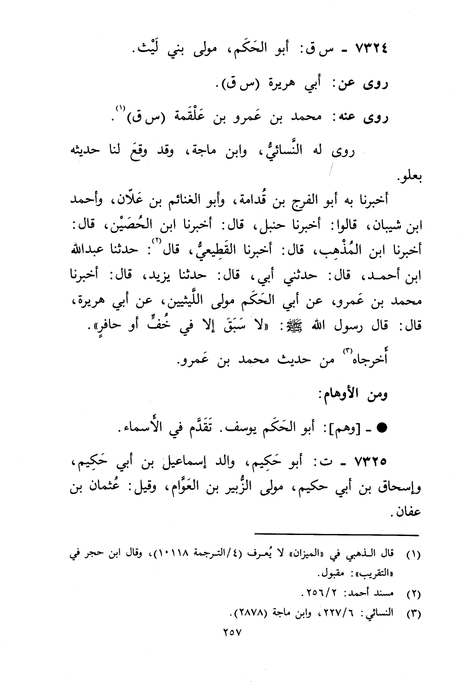 7325 - ت: أَبُو حكيم، والد إِسْمَاعِيل بْن أَبي حكيم، وإسحاق بْن أَبي حكيم، مولى الزبير بْن العوام، وقيل: عثمان بن عفان.