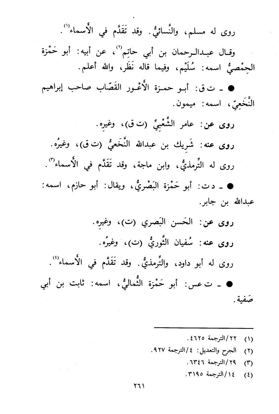 • ت عس: أَبُو حمزة الثمالي، اسمه: ثابت بْن أَبي صفية.