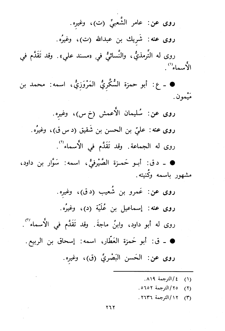 • ع: أَبُو حمزة السكري المروزي، اسمه: مُحَمَّد بْن ميمون.