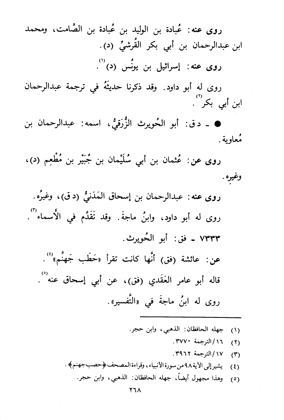 • د ق: أَبُو الحويرث الزرقي، اسمه: عَبْد الرحمن بْن معاوية.